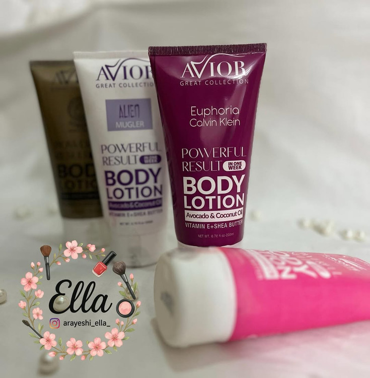 لوسیون بدن AVIOR با رایحههای Euphoria، Alien، Versace Bright Crystal و Lacoste